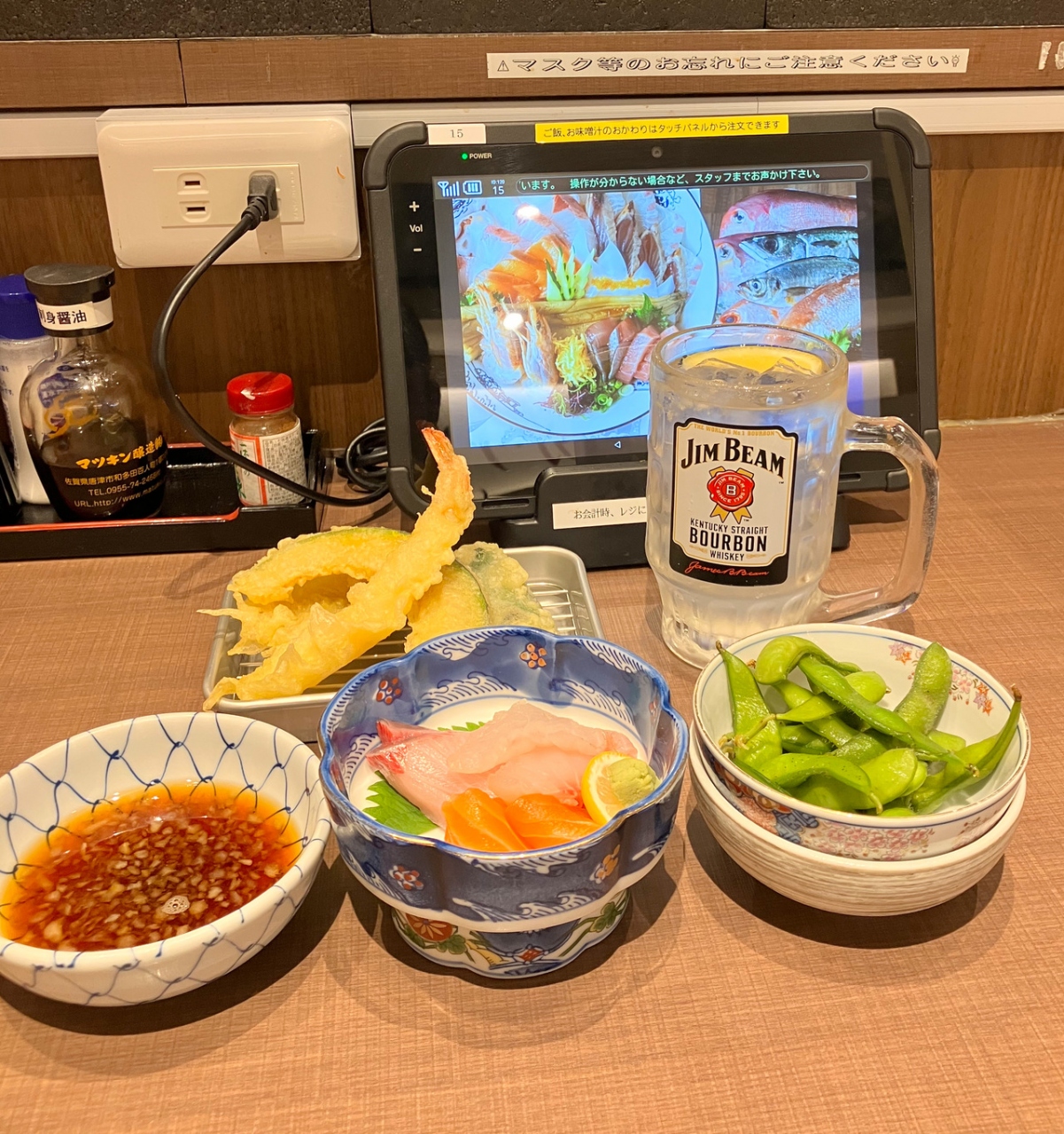 19時迄のハッピー泡は枝豆、お刺身、お好きなおつまみ1品と2ドリンクで1290円の鬼コスパ。とは言え、結局追加注文してしまうのも酒好きの性ですね。- 旅行時期