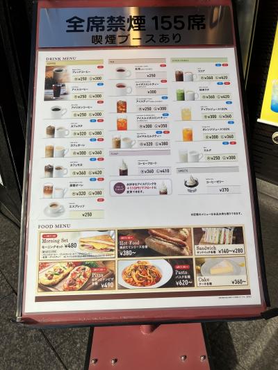 博多駅筑紫口から道路を挟んだビルの1階にあります。特徴は何よりも広さ。満席になることはあるのだろうか。モーニングでの利用です。Aはホットサンド、BとCはカイザーパン。味は普通ですがコーヒーの量が多いのが嬉しい。残念なのはテーブルの上のパーティションが邪魔な事。