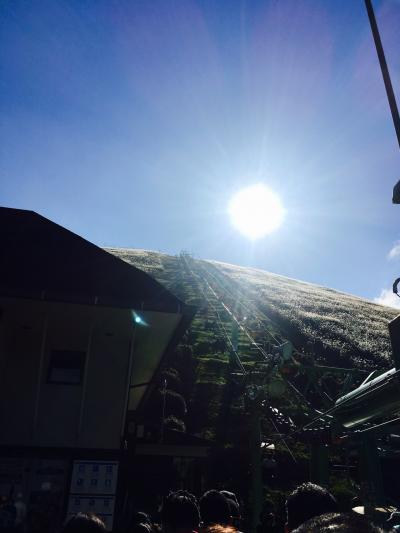 伊豆高原からバスで10分ほどの大室山。ロープウェイ乗り場から既に富士山がとても綺麗に見えました。11月だったのでススキがとても綺麗でした。山頂は20分ほど歩くことができ、へこんだ御釜のようなのところも降りられます。山頂からは、富士山以外に伊豆大島も。写真では伝えきれない絶景が広がっていました。