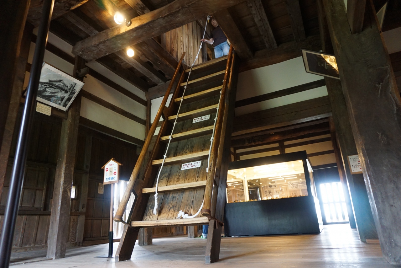 階段の角度、かなりヤバいです。女性の方はロングスカートまたはパンツの方がよろしいかと。