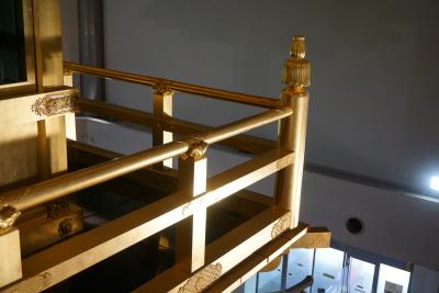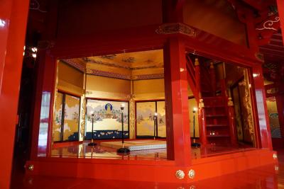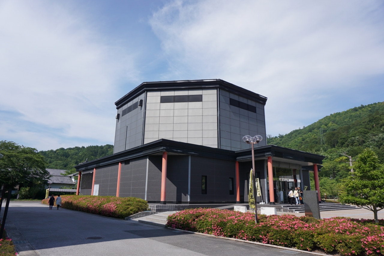 1992年「スペイン・セビリア万国博覧会」の日本館のメイン展示として安土城天主の最上部5階6階部分が原寸大にて復元されていたそうです。万博終了後その「天主」を安土町が譲り受け解体移築し新たに追加復元された部分を含め、保存・展示しています。凄いスケールで圧巻でした。館内のシアターでは定時に15分の安土城築城に関する映像が流され、興味深く観ることが出来ました。入館料は大人600円。隣の安土城考古博物館との共通券も売っているようです。