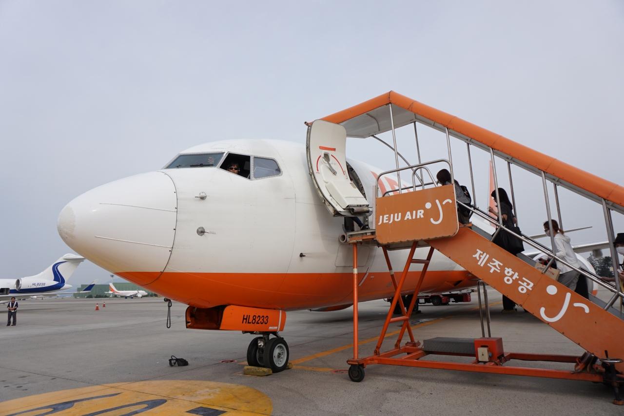 セントレアから金浦空港まで利用しました。行きは11時発、帰りは8:20発。それぞれ2時間弱のフライトです。以前乗った時はおにぎり一個程度の軽食とドリンクサービス(ノンアルコール)はあったのに、今回は希望者に水だけでした。ちなみにビールも円で販売していますが350CC一本400円でした。