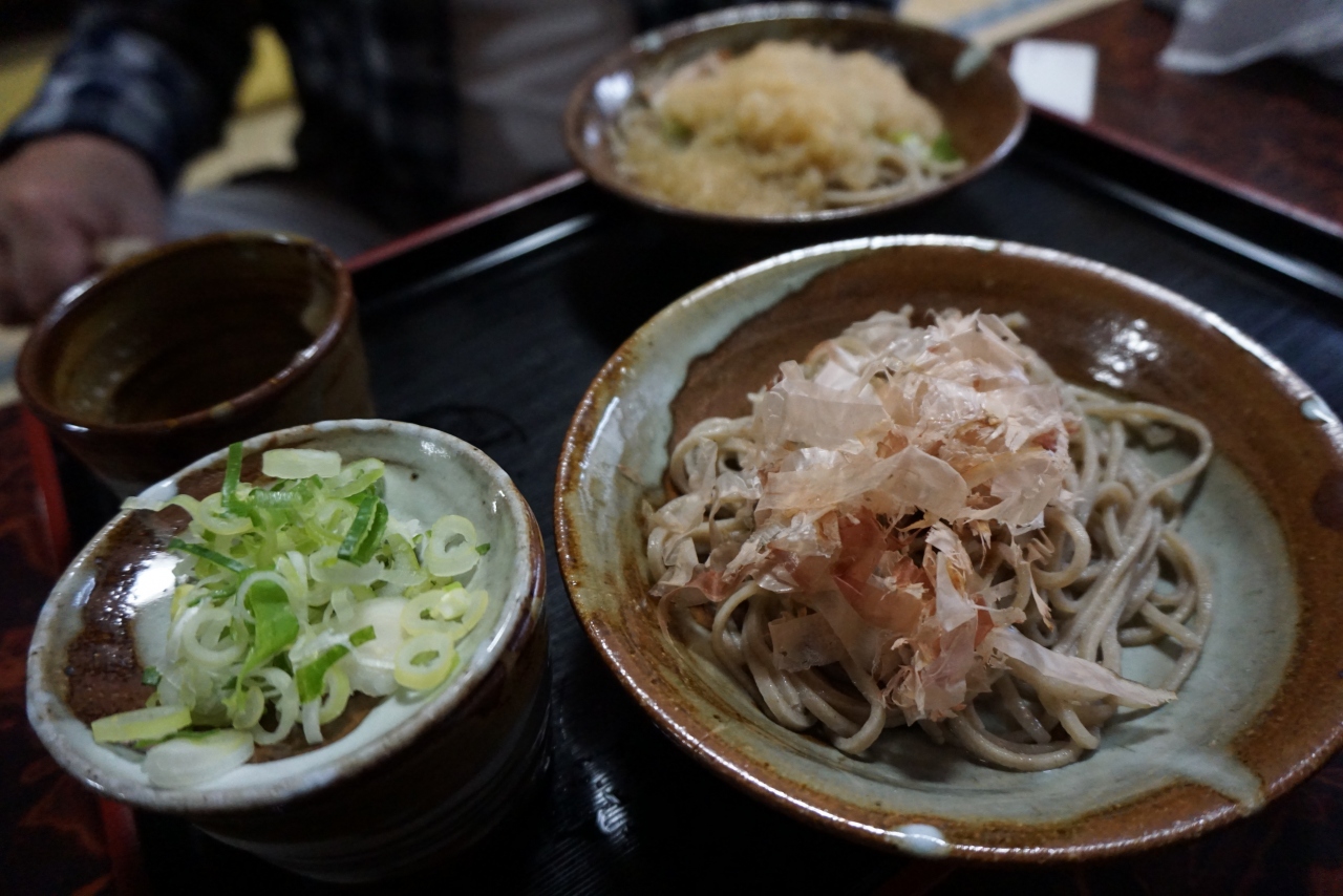 この2種類を二人でシェアして頂きました。おろしそばは大盛りってことで2皿に分かれての提供。っても満腹になるように量ではありませんね。事前の調査では、けんぞう蕎麦の方が大根辛いと思って覚悟していましたが逆でした。この時はおろしそばの方が大根の辛みが効いてたな~。辛みが苦手って人は、蕎麦にかける量に要注意です。蕎麦も美味しいけど、この大根の風味がまたよろし。