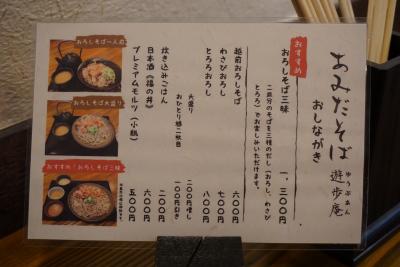 おろしそばは税抜で500円でコスパ高っ!市民に愛される地元のお店って感じなんですね。おろしの入った汁をざざっとかけて頂いてみました。う~ん、花かつおとおろしたての大根の風味…おろしそそば、美味しいっす♪もちろん最後にそば湯が提供されましたよ。丁寧な接客にも満足腹八分目でお店を後にしました。- 旅行時期