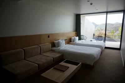 ヴィソンには二度ほど行きましたが、泊まったことがなくて。泊まってみたいなぁという願望を叶えるために、3月某金曜日、テラスツイン49,000円(朝食付き)ほどのブランて利用しました。正直、ちょっぴりいいお値段かなってのが印象ですが。お値段は曜日にもよるみたいですけどね。部屋からの展望は施設全体と自然が見渡せて、なかなかの絶景。プライベート感にも溢れてて、洗練された空間です。本草湯という一般の方も利用するお風呂にもチェックイン~チェックアウトの間、何度も入れるのも特典のひとつ。ヴィラタイプも部屋にも興味がありますね。ちなみに施設内のお店での買い物は、部屋づけが出来ません。