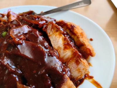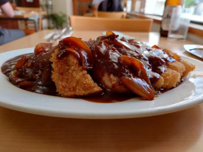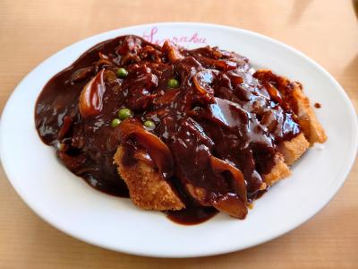 待つこと、10分ちょいで提供されたカツハヤシは、お店の人気1、2位を争うメニューのようです。ライスの上にドカンと分厚いカツ。その上に、これでもかって感じのハヤシのルー。トゥルットゥルで濃厚なルーなんです。すっかりカツが隠れちゃってますが、このカツがまたすんごいのです。んもぉ…分厚過ぎるんです♡でもって、超柔らかくて、お口の中でとろけちゃうのです。ボリュームも凄いので、食べきるとかなりの腹パン。とーっても美味しかったです。- 旅行時期