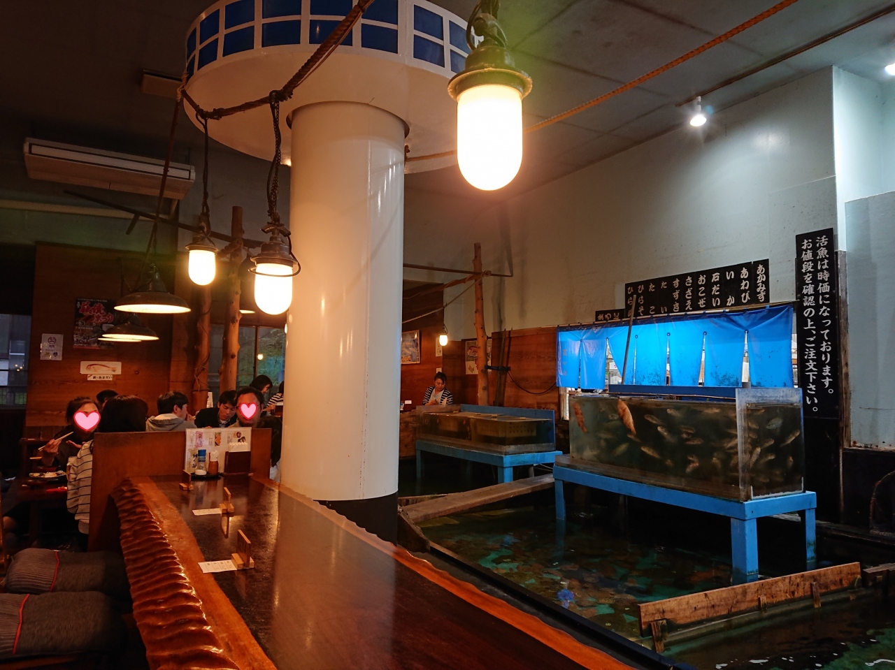 そびえたつ灯台が目印です。活きイカが名物のお店ですが…入口で美人店員さんに「ごめんなさいね、今日はイカが入ってないのよ」と言われ。ガーン。ま、仕方ないかぁ。天候不良で、ここ一週間ほど入荷がないそうな。「こんなこと、珍しいんですよ」だそうな。