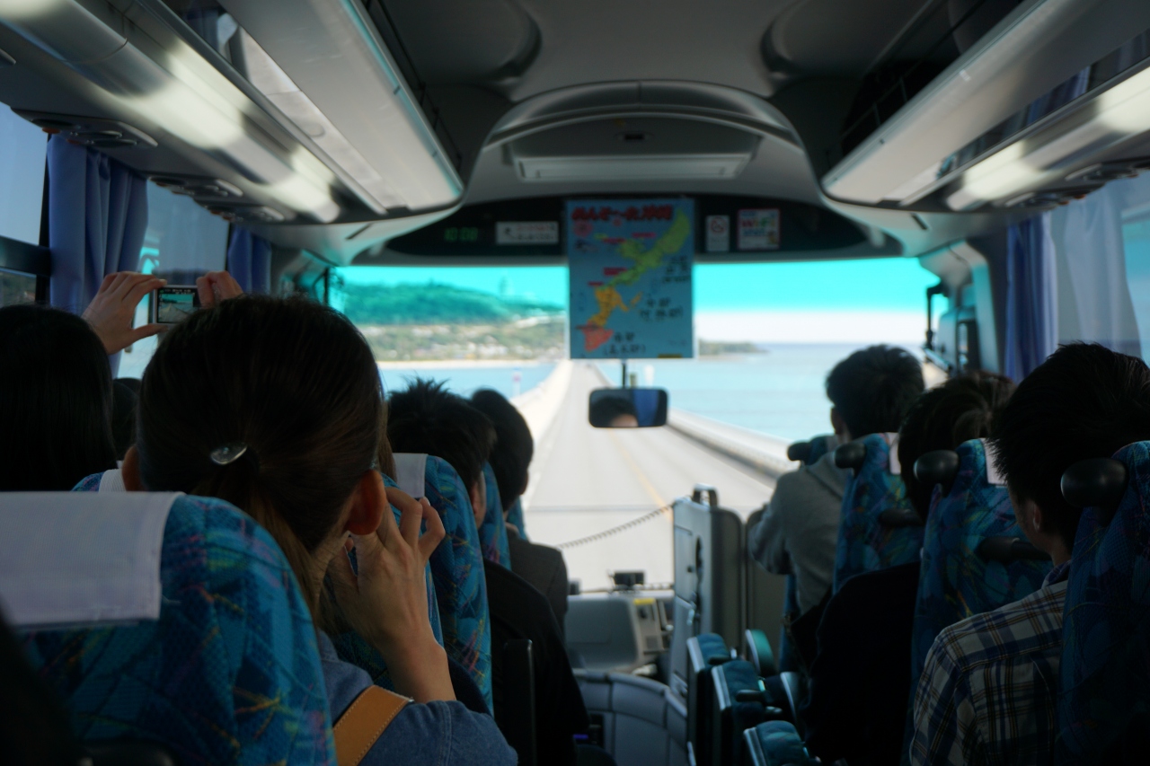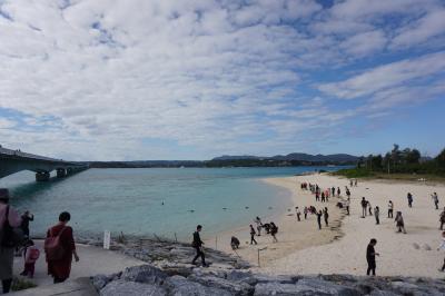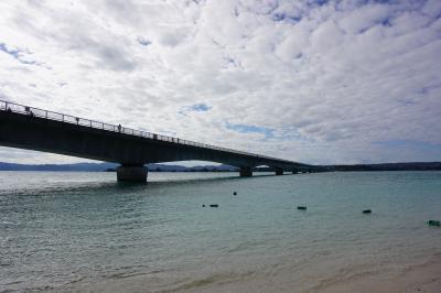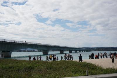 定期観光バスのコースに入っていました。イチオシは本島すぐから渡る時、車窓から見た真っ直ぐに伸びる橋の景色。バスなら絶対最前列の席を確保しておくべきでしょう。添乗員さん曰く、沖縄の海は空の色をそのまま映すそうな。晴れた日の海の色は素晴らしく青いそうです。島に渡ってすぐの地のお土産屋さんに売っている海ぶどうは、沖縄一安いそうな。確かに1パック500円で売っていたので他で見るより安かったですね。