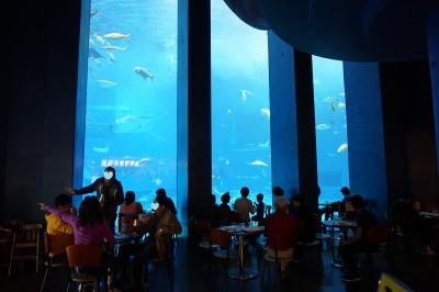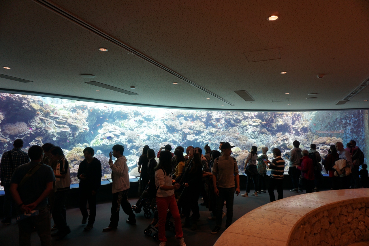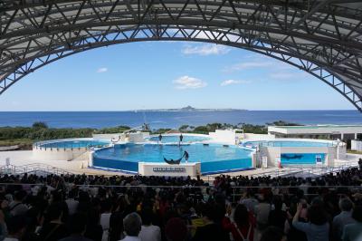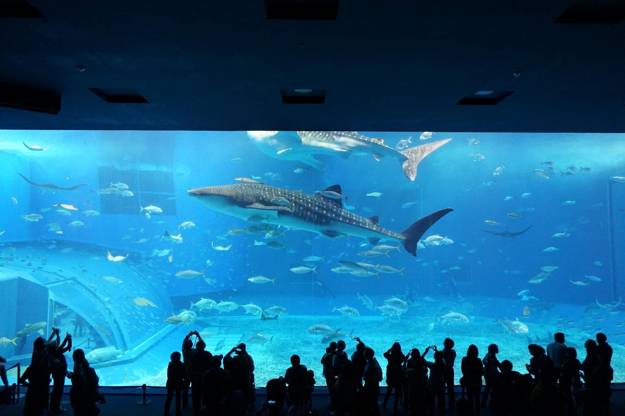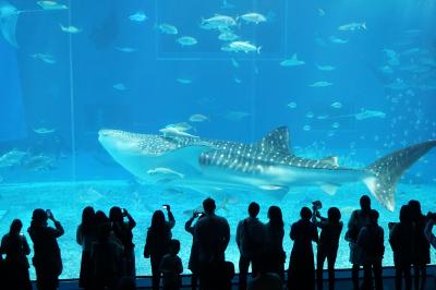 定期観光バスのコースに入っていました。沖縄一の水族館で、時間的に余裕があれば是非行って頂きたいスポットだと思います。とにかくスケールがデカいですね。ジンベエザメのいる水槽はあまりにも巨大で圧巻。いつまでいても飽きさせません。食事をとる場所は3箇所ほど。どこも混雑するので、早め(せめて11時半頃)のランチがおススメです。無料エリアではイルカのショーも観られますよ。