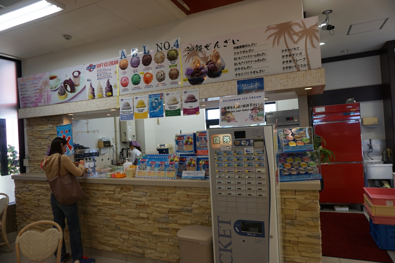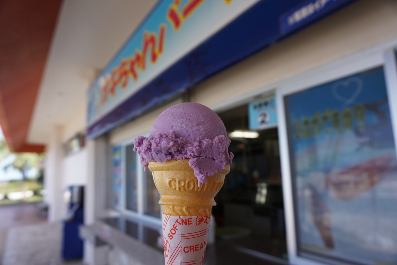 美ら海水族館に隣接したこちらのお店。イルカショーの前に紅芋アイスクリーム(308円)を頂きました。いやいや。これがまたね、紅芋感たっぷりなんっすよ。美味しかったわ~。