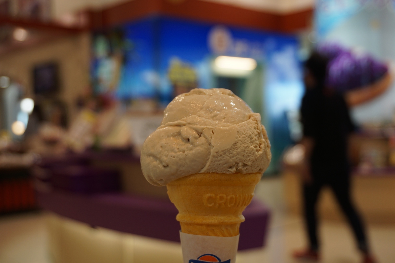 お土産に定番のその"紅芋"タルトや"紅芋"のスウィートポテトなぞを買ったあと、店内のスウィーツコーナーで沖縄ったらやっぱサトウキビだよねぇ、とサトウキビアイスクリーム(330円)を頂きました。