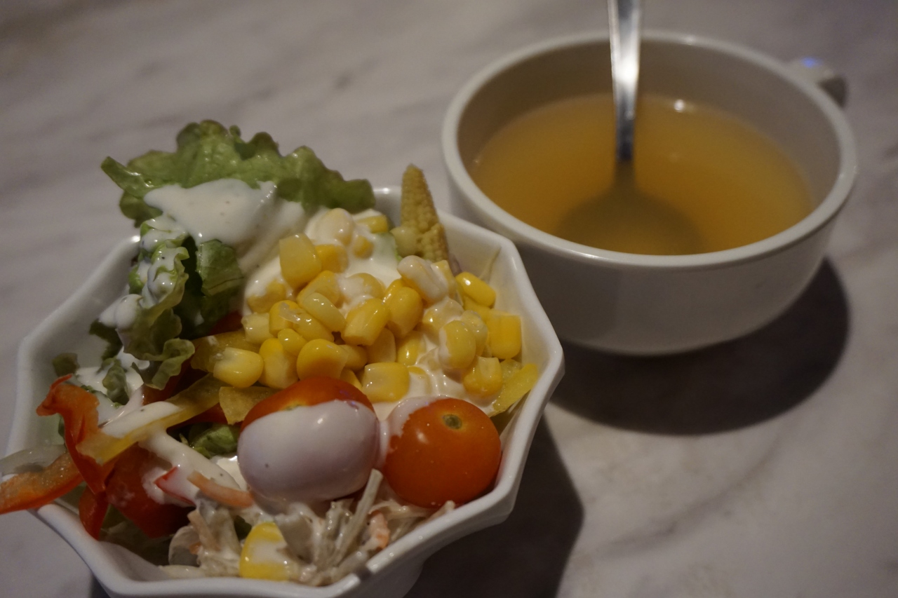 県内の多くのステーキ屋さんは同じスタイルのようですが、サラダバーとスープバーがついて参ります。そこはまぁ、チェーン店と質はあまり変わんないかな?