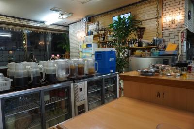 那覇市内でオキナわ~んなモーニング狙い。評価の高い、こちらのお店に訪問してみました。ネット上では24時間営業となっていますが…たまたまなんでしょうか、この日は朝6時頃、準備中の札がかかってても、店内に灯りが。手動でしか開かない自動ドアを少し開けて覗いてみるとおばちゃんが笑顔でど~ぞ~と招いてくれました。
