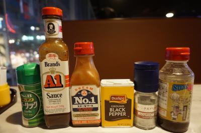 数種類のソースと醤油、塩、胡椒などがヅラ~と用意されており、色んなバリエーションの味で楽しめるのもまた楽しいもので。節操のないなおかりは、一通り頂いてみました。