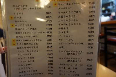 11時頃の訪問ですが、行列が。んでも回転がいいんでしょう、さほど待つことなく店内へ。内観はいかにもって感じの大衆食堂。店内入ってすぐの券売機で買った食券は、焼きそば(600円)、オリオンビール瓶(490円)焼きそばは所謂内地で頂くそれとは随分イメージが違います。そうです。ソーキそばなどの沖縄料理に使われる麺をそのままソースで焼き上げたもの。味付けは沖縄で頂くだけあって、ウス味。けど、意外なまで飽きが来ず、さくさく頂けました。お冷とお片付けは当然セルフですよ~。- 旅行時期