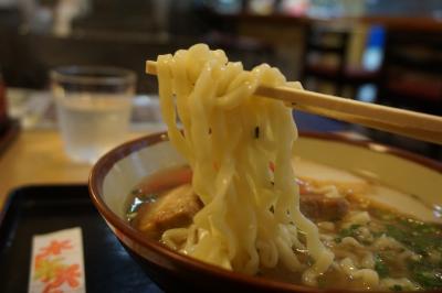 縮れた太麺で、食べ応えがあります。お味はそうですねぇ、正直沖縄そば自体、食べ比べしたことがあまりないので、上手くは表現出来ませぬが…味がしっかり染み付いた三枚肉が旨くてウス味スープと麺とのコンビネーションはいいかもと思いました。この時は厨房には笑顔と愛想の良いおばちゃんが一人。元気の良さが印象的でした。- 旅行時期