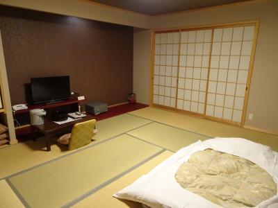 カニカニ三昧ミステリーツアーで泊まりました。お一人様限定ツアーなので、広~い和式の部屋にポツンとお布団。あ、バスなしの部屋でした(温泉なのでバスは不要ですけどね~)。内湯は一つ、内湯から浴衣を着て階段を百段ほど上ったところに森林露天風呂が。内湯は大したことはないと思いましたが、この森林露天風呂がその名の通り木々に囲まれてマイナスイオン一杯なお風呂。夜はなかなか幻想的で良かったです。朝食も種類がめっちゃ豊富で、満足でした。