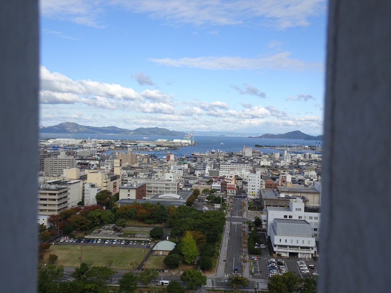 現存十二天守の一つです。丸亀駅からは歩いて10数分ほど。ただ、門をくぐってからが少しだけ大変。頑張って長い坂を上がって行かないといけません。健脚でない方は数回休憩しながらという形になるかも。ただ、上がりきった時の景色はとってもステキです。