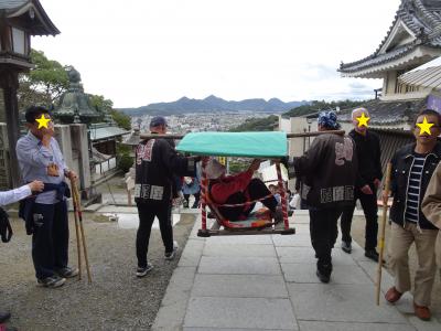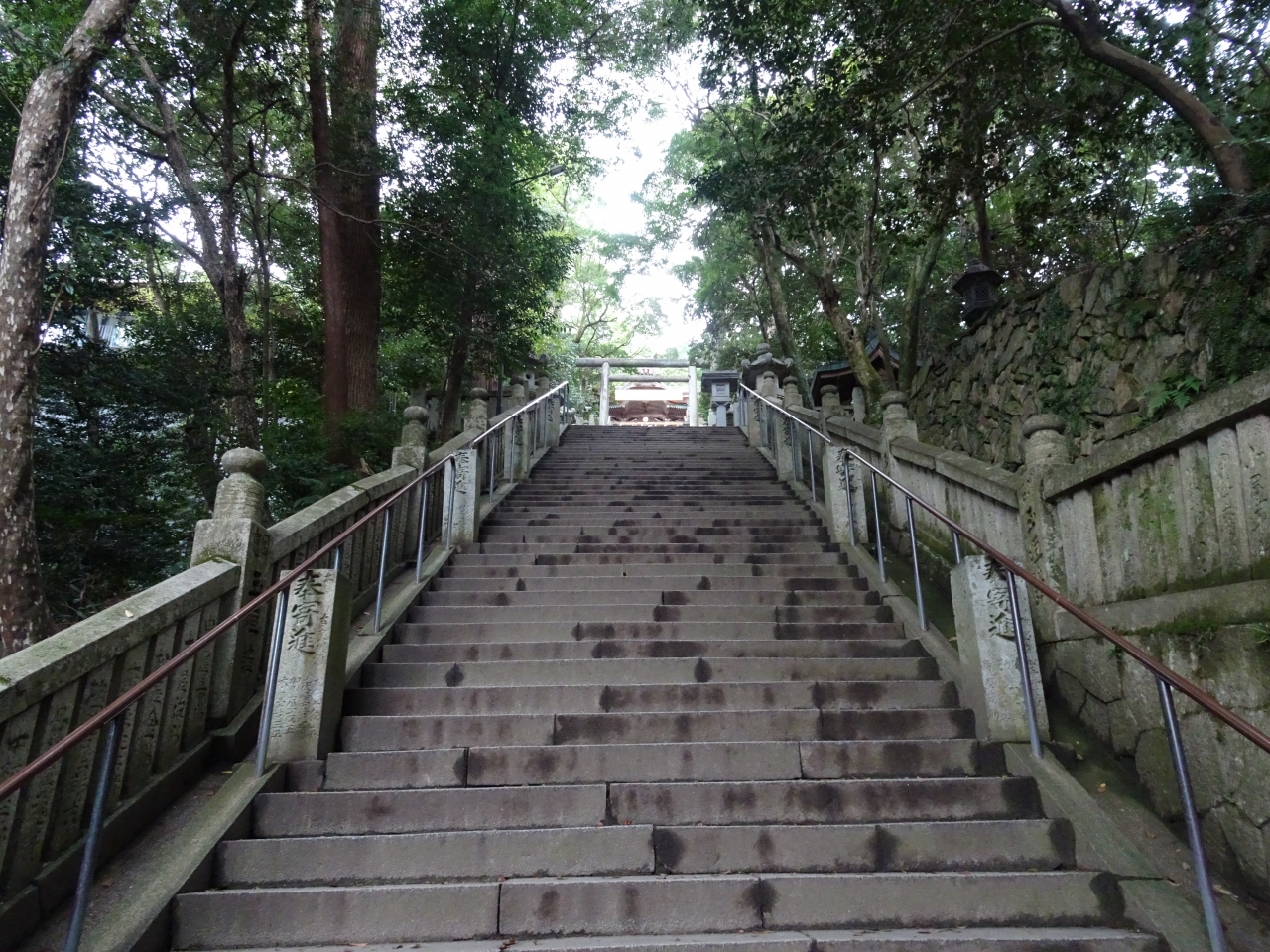 JR琴平駅から歩いて10分少々。駅を出て左に進むと右側に金比羅さんへ抜ける商店街があるのですぐ分かるはずです。とにかく階段が長い…。気が遠くなるほど長いのです。785段だそうすね。途中何か所も立派な建物が見えてくるのでその都度「あ、ついに着いた~」と思ってしまうけど、その全てが途中の社。本宮にはなかなか手が届かないので、相当の覚悟をして下さい。ただ、上りきった時の達成感、喜びは大きいですよ。