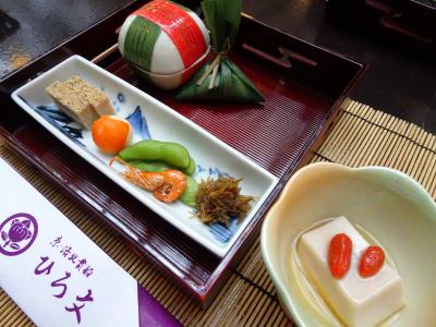 この日頂いたのは、川床料理10,800円。内容は、先付、八寸、造り、吸物、焚合せ、焼物、油物酢の物、冷鉢、ごはん、香物、デザートとなっています。