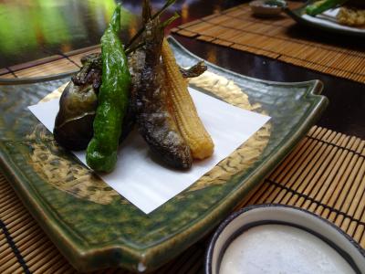 高山寺のバス停のすぐ横に佇む雰囲気の良いお店。川沿いの景色の良いところでお食事を、という貼り紙にも惹かれて入りました。頂いた料理は、