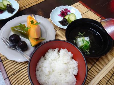 朝食会場は朝6時から営業と早い出発には助かりますね。"へれんけらあ"として営業しているレストランが、ホテルの朝食会場と兼用で使用されているようです。なぜか、入口に設置された殺菌下駄箱に入っているスリッパに履き替えて中に入ります。