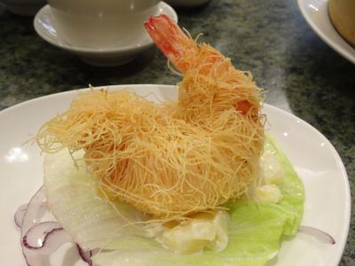 念願の蟹のおこわを頂いてテンションはマックス☆ホントに美味いと思いましたよ、蟹おこわ。大海老のそうめん包み揚げは、サクサクで食感が最高。あっさりしたはまぐりスープは80元とコスパよしです。