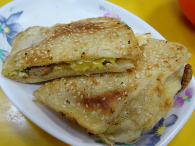 ◆焼餅猪排起士蛋(肉とチーズと卵入り焼き餅) 55元