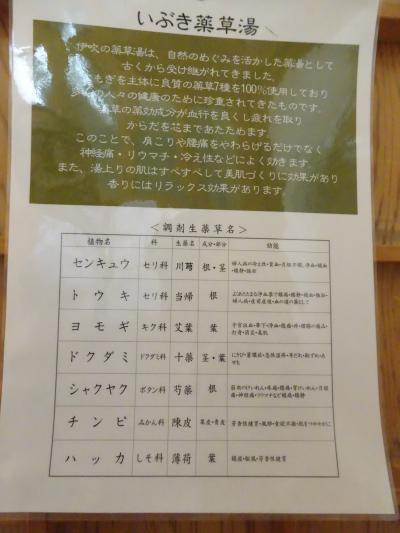 近くを通りかかった時、"薬草"というキーワードに惹かれて寄ってみました。伊吹山は薬草の宝庫。なるほど、その薬草を前面に出したお風呂なんですね。入場料は600円と比較的リーズナブルでした。やや小ぶりではありますが、露天風呂も二つあるし、風呂上りのマッサージも受けられたりと色々充実した施設でした。