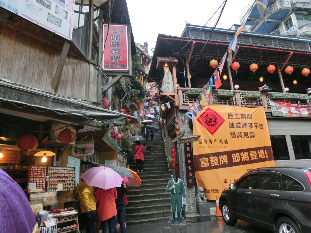 予めネットで調べてみると片道1,000元で交渉すればほぼOKということだったので、その通りにしてみたら快諾に近い状態でした(てことは…900元での交渉もありなのか?)。行きに乗ったタクシーの運転手は地理に疎いようで九フンにさえ行ったことがなさそうだったけど、何とかナビでたどり着くことが出来ました。その運転手、長距離が嬉しかったんでしょうかビニール傘をサービスでくれちゃいましたよ(#^.^#)