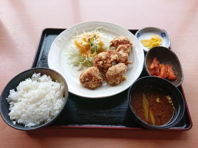 国道19号線沿いにあるトラック野郎御用達という感じの食堂。実際、何台かの大型トラックが停まっていました。愛想のいい元気なおばちゃんがてきぱき走り回ってます。朝早くから営業しているので朝ご飯からランチ、ディナーまで便利に使えるお店で、メニュー全部がボリューム一杯。注文したとりから揚げ定食は唐揚げが8個と大盛ご飯、大盛お味噌汁でお腹一杯になりました。デカいマヨネーズと一緒に提供される辺りも大衆食堂感一杯です。