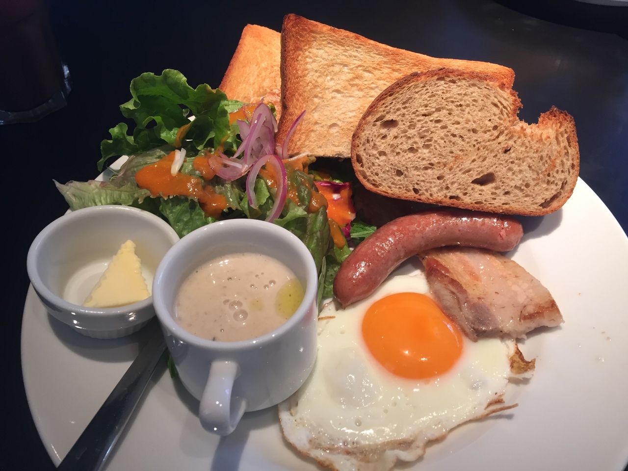 「厚切りトーストとソーセージ&ベーコンエッグ」を頂きます。トーストがこんなに美味しいと感じたのは初めてと思うぐらい、行列が出来る事に頷ける名店です。- 旅行時期