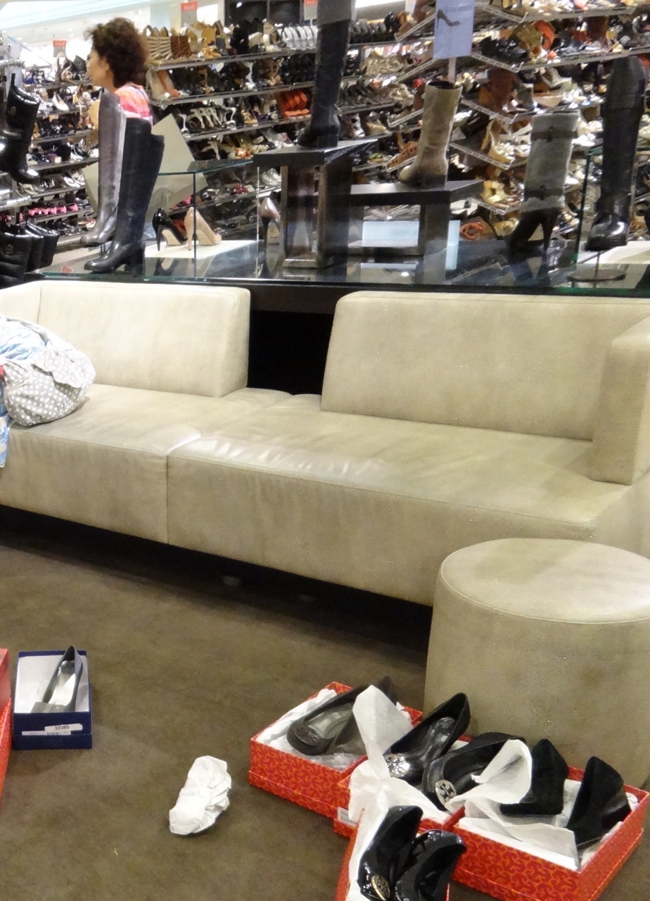 うわさには聞いていましたが、ノードストロームの靴売り場は最高です。なんとなく商品を眺めていると、店員さんがそばに寄ってきて、好みに合いそうな靴を次々とお店の奥から出してきてくれます。気づくと10足以上の靴が並べられていました。どれも好みにあうものばかりで、サイズもぴったりのものを持ってきてくれるので、ついつい買いすぎてしまいました。