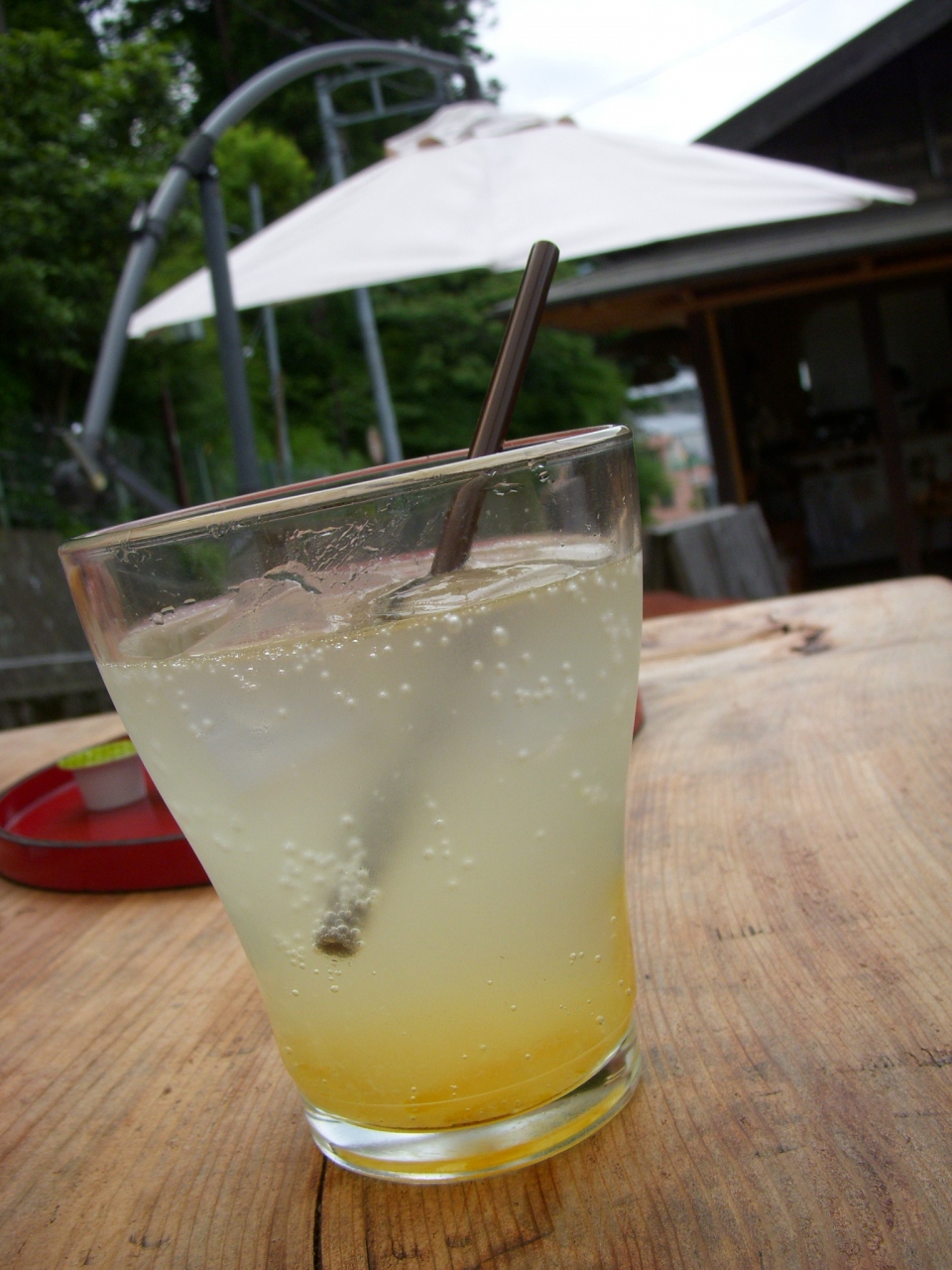 アイスコーヒーと柚子ソーダーを飲みながら汗かき親子の義母と夫は