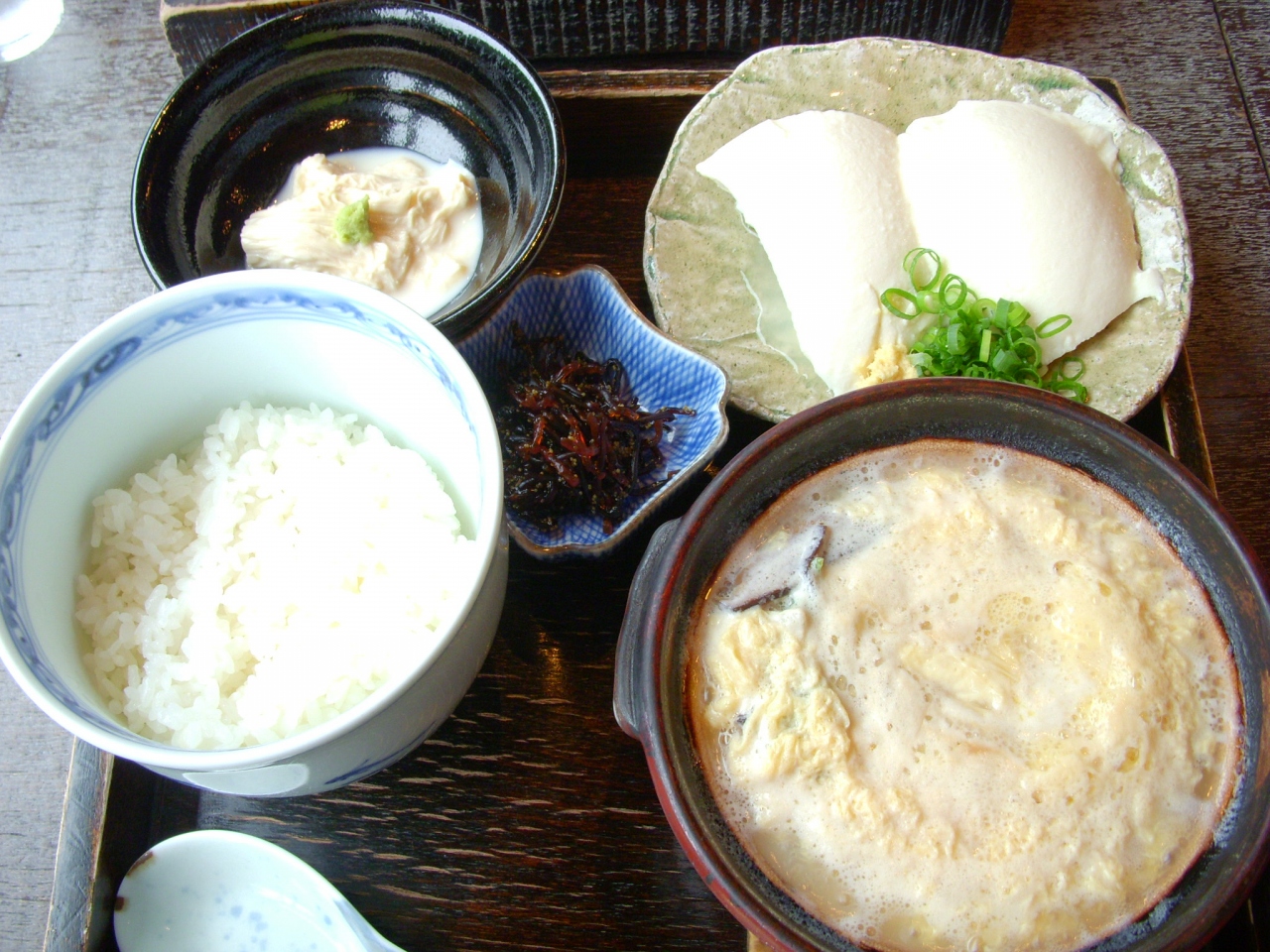 ふ~んわり、とろとろアツアツ・カツオだしの美味しい湯葉丼の後は足湯でホッコリ 湯葉丼 直吉