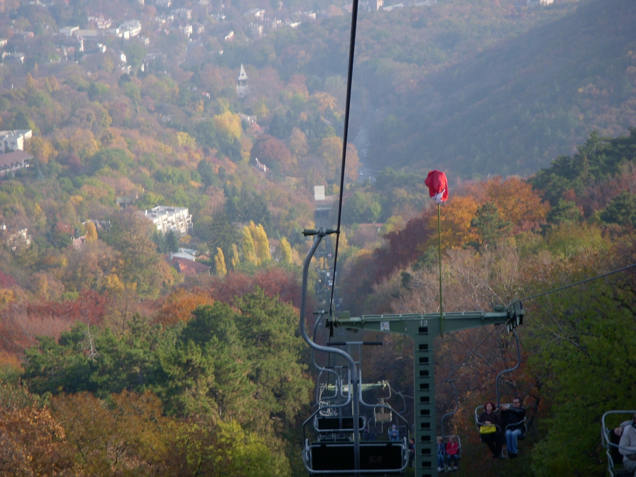 新緑から秋の紅葉の時期におすすめと聞いてリフトでヤーノシュ山へ行ってきました。秋、最後の暖かい日とあって多くの家族連れで賑わってました。普段は街派の私たちでもにわかハイカー気分で山の中の散策を楽しめました。かなりシンプルなリフトで秋の紅葉の中を空中散歩した気分♪時間に余裕のある旅行者やちょっとリフレッシュしたくなった