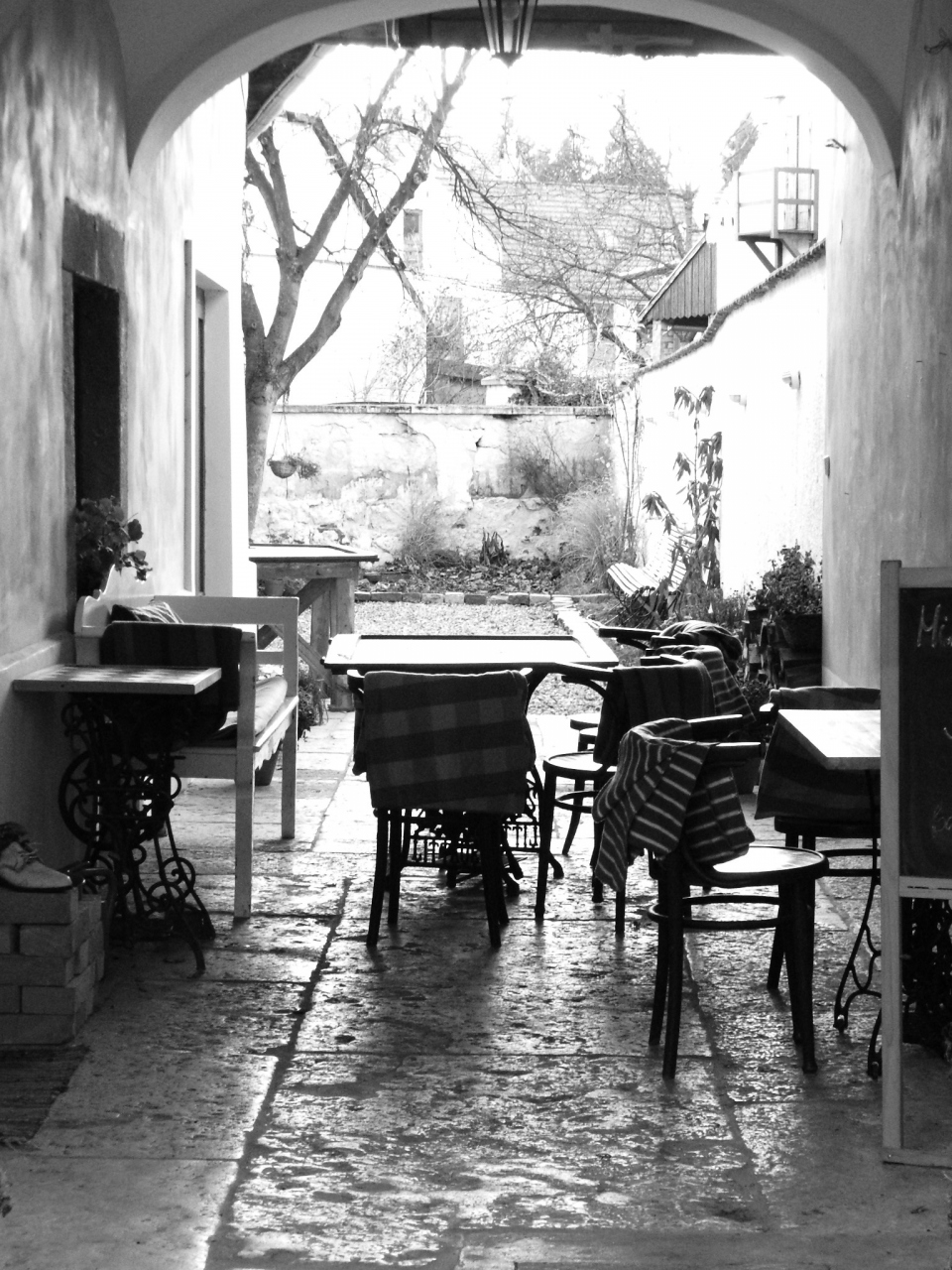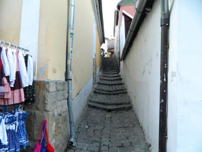 石畳の脇には小さな小道も。冒険心たっぷりに通り抜けると教会まで続く道だったり。ヨーロッパの街歩き好きには特にお勧めです。