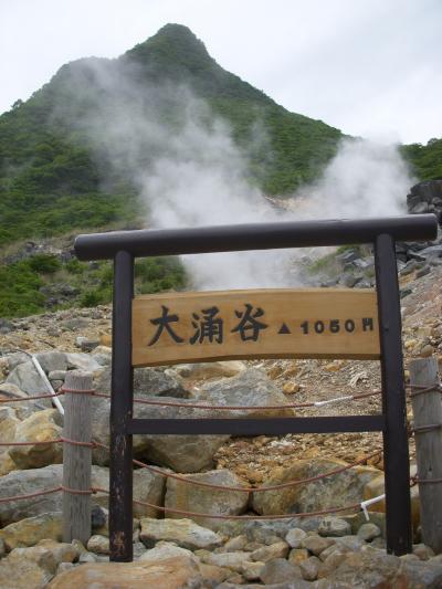 せっかくなので早雲山駅から10分ほどのロープウェイの空中散歩を楽しみ到着。
