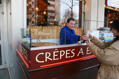 屋台や立ち食い系というのは、まぁおやつ感覚で食うべきものだろうけれど、こーゆーものがおいしいと、なんか街の印象がよくなる。このクレープはイタリア広場にあったんだけれど、なかなかお味がよろしい。パリはひたすら歩くべき街だから、こーゆーグルメを楽しむのはおすすめだな。