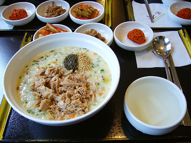 明洞にはたくさん有名な粥の店があって、どこも日本人御用達といった感じ。ポンチュクも日本語に対応しているから、そういうお店と一緒なんだけれど、地元のお客さんが多いのがポイント。日本人の評価より、地元の方々が気軽に入る店のほうがいい。ぼくが行ったときは、日本人と地元の方が半々くらい。注文してから、ちょっと時間がかかる気がしたけれど、それも真面目につくっていると理解して、気にならなかった。お味はさっぱりして、前日にマッコリを飲み過ぎた身体には優しくて、胃がほっと落ち着く感じ。韓国は食がとてもうまいから、暴飲暴食に陥りがち…、そんなときにぴったりだと思った。