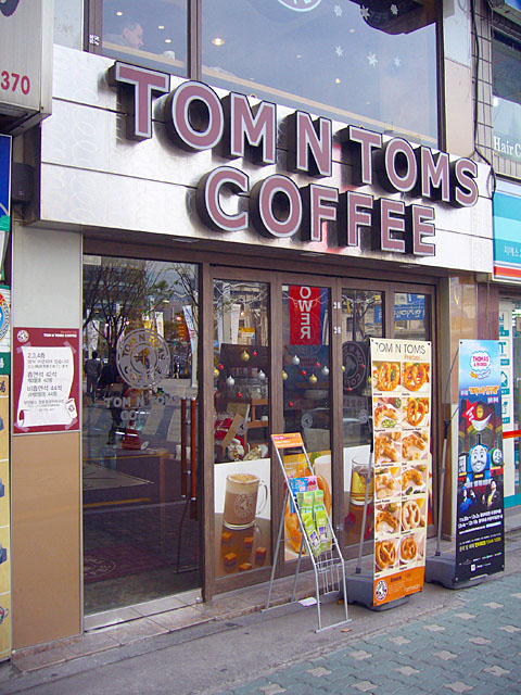 海外に行くと、入りやすくて失敗しないってことで、けっこうスタバに入っちゃったりすることが多かったりするけれど、せっかく海外まで行ってスタバってのもなぁ…。そんなときに入ったのがTOM N TOMS。韓国独自のコーヒーチェーンらしい。チェーンならではの入りやすさで、エスプレッソなんか、すんごく濃くていいお味。ソウルもスタバ天国だけれど、地元のチェーンに行ってみるのも、いいかも。