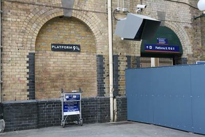 ハリーポッターの舞台になったキングスクロス駅の9と3/4番線。柱に激突するアホが続出したというが、いまは9番線とか10番線は近郊電車の専用ホームに代わってしまい、原作が書かれたころとは雰囲気が違う。でも、世界中から客が押し寄せるから、仕方なくこんな風に観光客用のモニュメントになってしまった、、、ちょっと興醒めなんだけれど、写真を撮ってしまうところは、やっぱお上りさんなんだな、、、半分が壁にめり込んだ(という設定の)カートなんか、間抜けなんだけれど、遊び心はあって、見てもいいのかなとは思う。