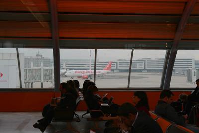 ディスカウント航空会社で有名になってしまったイージージェット。今回はじめて乗ってみた。ネットから航空券を予約すると、BAやエアフラの半額から10分の1くらいでチケットを取れるのだから、個人旅行では使わない手はない。ただ、荷物が多いと超過料金を取られるし、席は自由席だから早く行かないとペアで並んで座れなかったりするし、搭乗30分前を切ったら、さっさと置いて行かれる。安いだけあって、若造がうるさいのも気になるけれど、やっぱり安さには勝てない、、、かな。