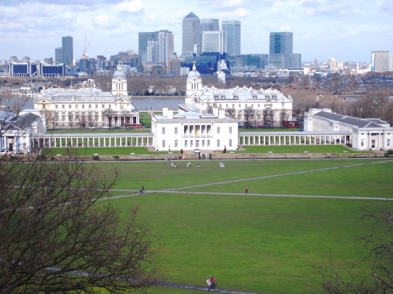 どれだけ寒い季節だろうが目の前に広がる鮮やかな芝生の色と、大学・博物館の荘厳な歴史的建築物、そしてさらに後方に見えるカナリーワーフの高層ビル群。ロンドンっぽくて、私は大好きな場所です。