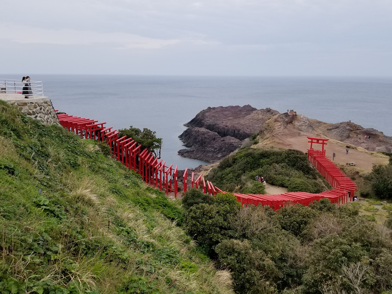 元乃隅稲荷神社のすぐそばにあります。高台にあり、展望台からは青海島をはじめ大パノラマを独り占めすることができます。広大な敷地には子供の遊ぶ遊具などもあり、晴れていれば親子で戯れることができそうです。が、わたしの訪れた日は場所ゆえにか風がメチャクチャ強かったです。