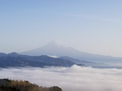 以前にも泊まったことがありましたが、夏だったために霞んでしまい富士山は拝めず。空気の澄んだ2月に再トライです。目の前に絶景の富士山がこれでもか、これでもかと迫ってきます。清水漁港の夜景も美しく、朝は雲海にも出会えました。