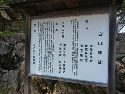 飛騨金山駅から、バスで10分くらい。四つの滝口で下車すると目の前にあるのが、白山神社。祭りの時期ではなかったので、人っ子一人いなかった。みんな車で素通り。滝に行く道の目印となる神社。大きな祭りがあるとは思えないほど小さい。