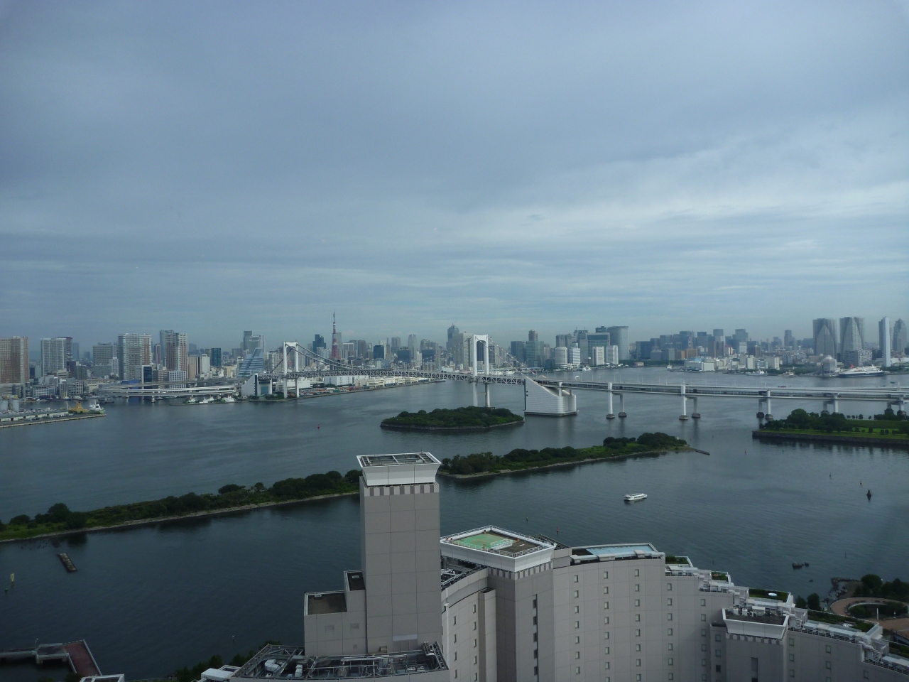 会社の、夏の宿の抽選で当たり、1泊朝食付きで、一人2500円。駐車場も、宿泊者は1000円と安い。チェックアウト(12:00)後の14時まで追加料金なしで、お台場で、昼食を食べて帰ってもゆとりあり。部屋は、15階ではあったが、レインボーブリッジが見えず、残念だが、朝食の、洋食バイキングも品数結構あり、大満足。