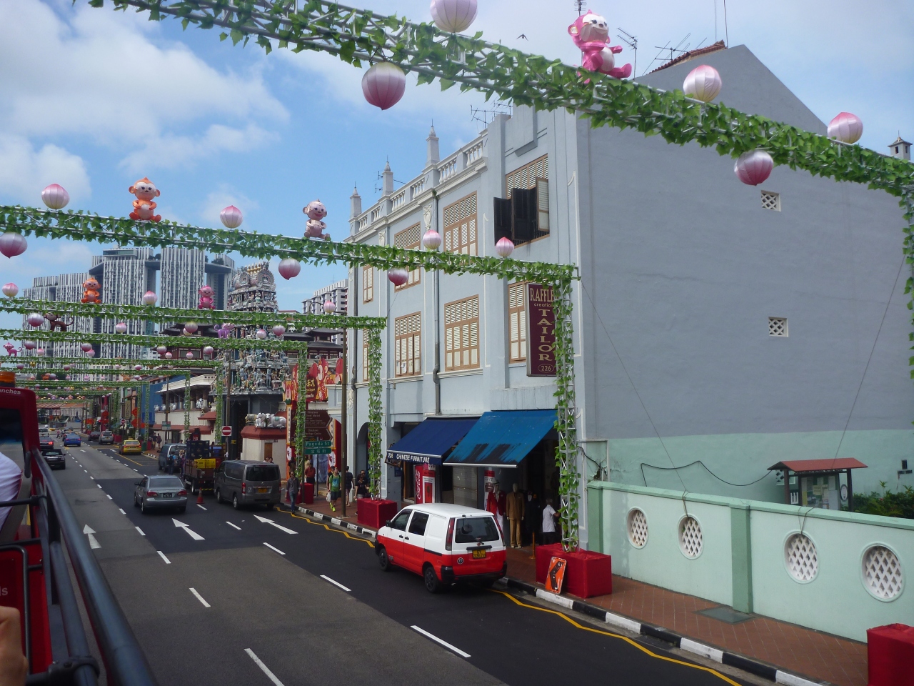 今回は時間がなく、ツアのシティーバスオープントップバスからの車窓観光のみとなってしまった。景観も中華の香りが漂い、春節に近いこともあり、春節の飾りつけが始まっていた。次回シンガポールに来る機会があったら訪れたい。