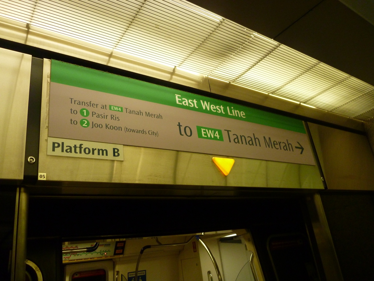 シンガポールについて、MRTに乗るとき、そして帰るときに降りる駅。両端が改札口でT2とT3に行ける。T1からはどちらかに行って、乗らなければならない。T3でのEZリンクカードの発売は7:00から。ツアリストパスは8:00から。